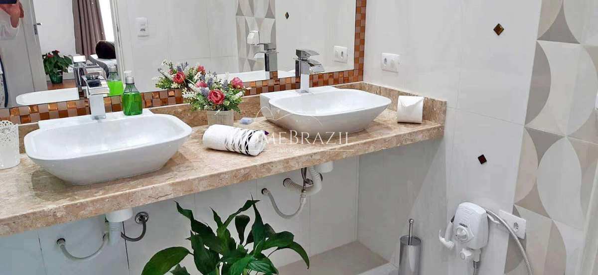 5 suítes no piso superior, todas com banheiro privativo e deck